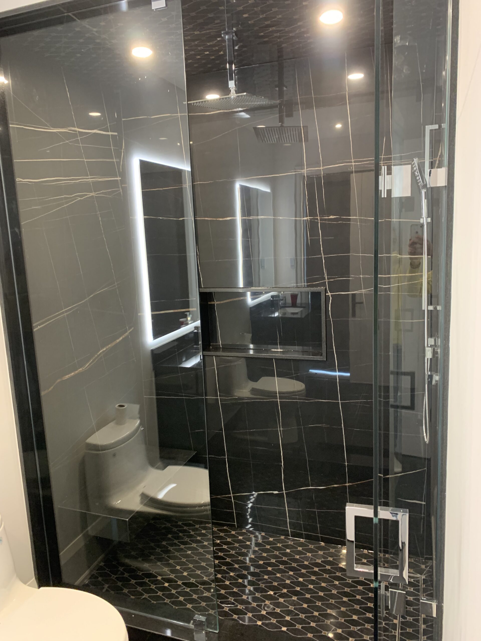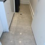 a marble floor with a chandelier