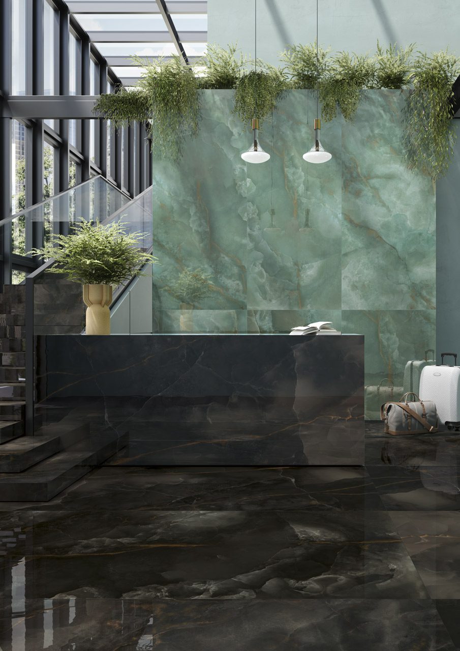 This onyx look porcelain slab perfect for bold design statements, this tile brings character to bathrooms, feature walls, and sophisticated commercial interiors. And with porcelain’s known durability and ease of care, it delivers both beauty and long-term performance.