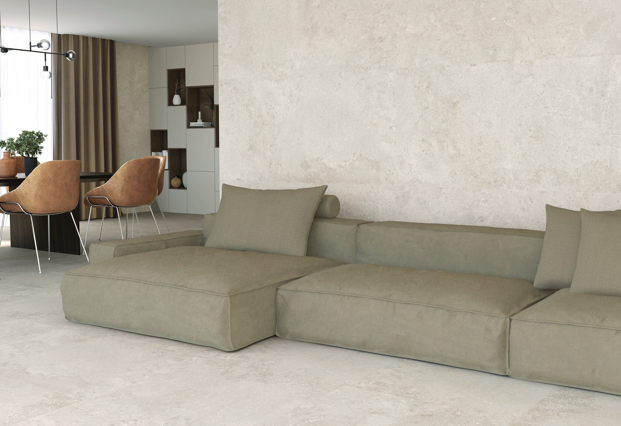 The Tuscany Bone Porcelain Tile brings a modern yet timeless look to any space. Its soft beige tone with subtle sand patterns and delicate dots adds natural depth and character, creating a warm and inviting atmosphere. The large format size and matte finish ensure a seamless, sophisticated appearance on both walls and floors.